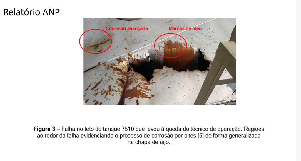 Desde 2013, a inspeção de equipamentos havia recomendado à gerência da REDUC a troca do teto do reservatório, que, na época, já estava totalmente comprometido pela corrosão, com apenas 1,9 milímetro de espessura. Em 2014, uma inspeção de duas semanas realizada por auditores do Ministério Público do Trabalho (MPT) confirmou as condições precárias de manutenção dos tanques da refinaria e chegou a interditar alguns deles, devido à corrosão acentuada nas escadas de acesso e nos tetos. Outros problemas como iluminação precária e falta de corrimãos também foram apontados. Na ocasião, o acesso às estruturas foi interditado, e a Petrobras sofreu 51 autos de infração.