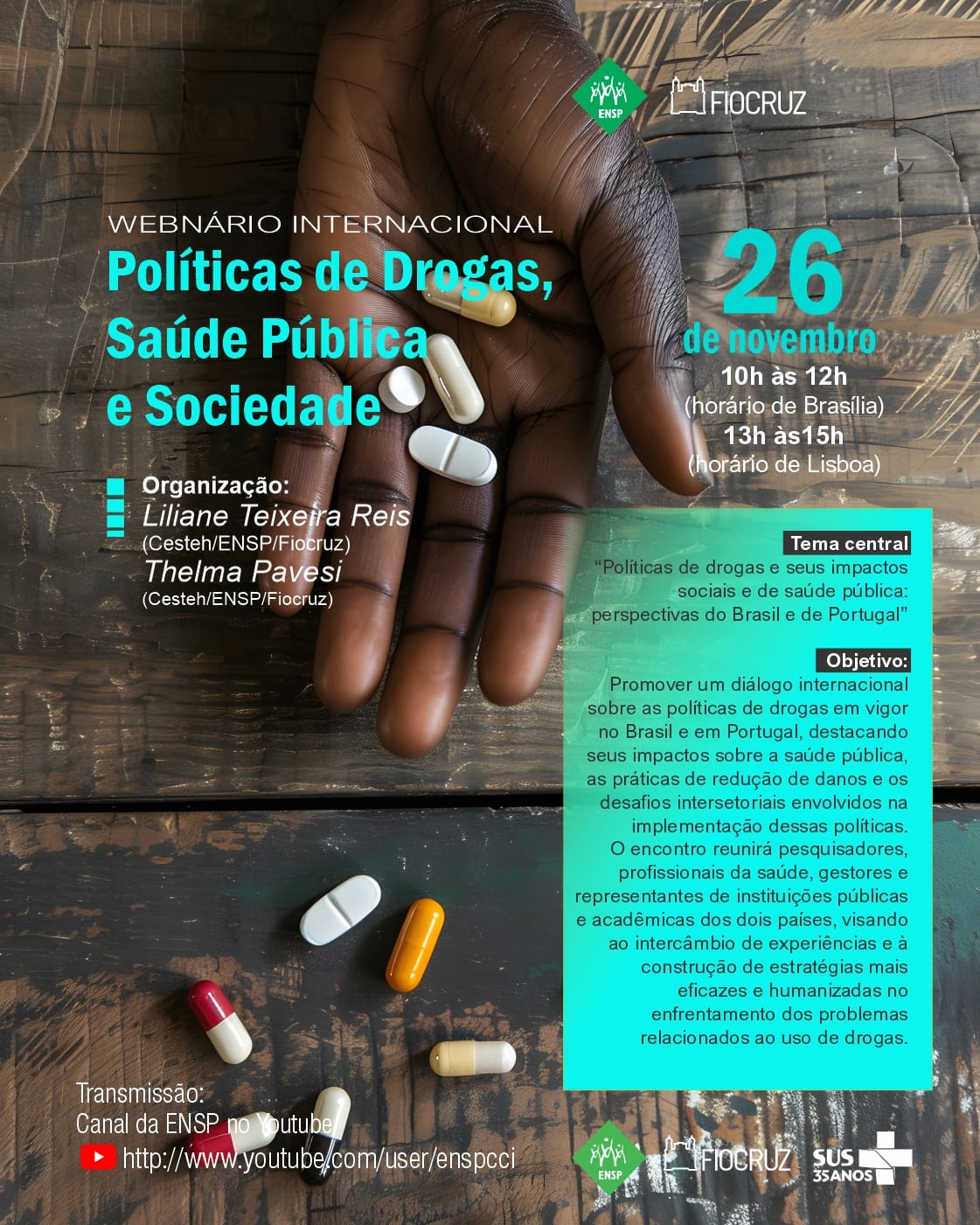 A iniciativa tem como objetivo promover um diálogo internacional sobre as políticas de drogas em vigor no Brasil e em Portugal, destacando seus impactos sobre a saúde pública, as práticas de redução de danos e os desafios intersetoriais envolvidos na implementação dessas políticas.